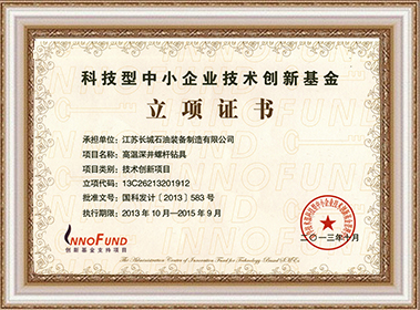 高溫深井螺桿鉆具創(chuàng)新基金項目證書 |