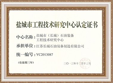 鹽城市工程技術(shù)研究中心認定證書 |