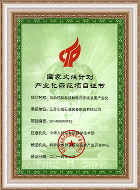 國家火炬計劃產(chǎn)業(yè)化示范項目證書 |