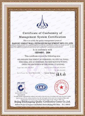環(huán)境管理體系認證證書—中文 |